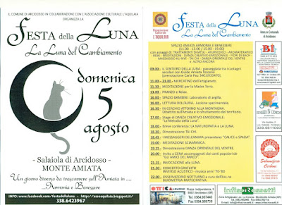 Vi terremo compagnia dalle 9 di mattina fino a piena notte con cena, balli e interessanti attività tra cui "Invocazione alla Luna" e "L'osservazione notturna del cielo".